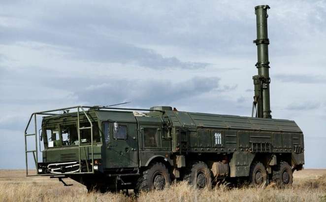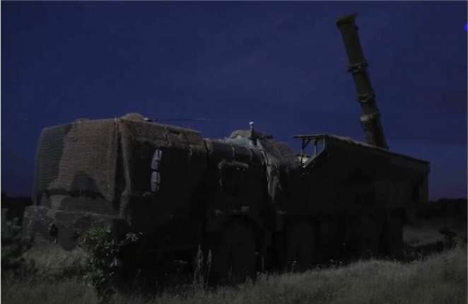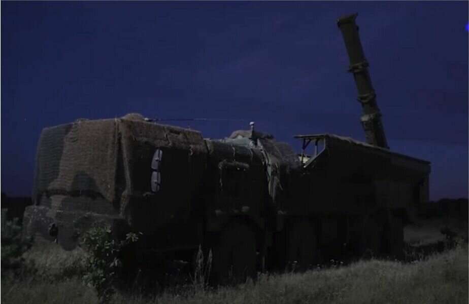 Скриншот видео, распространенного Минобороны России, на котором показан ночной пуск ракеты комплекса «Искандер»