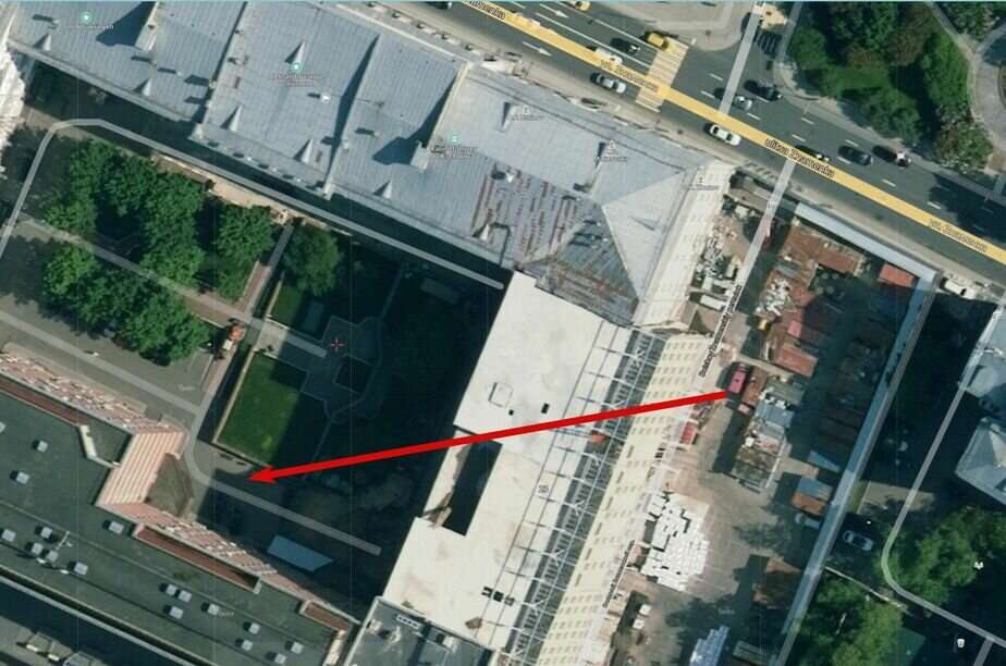 Во внутреннем дворе здания на Знаменке, 19 обнаружился «козырек», похожий на тот, под которым фотографировались офицеры из ГВЦ