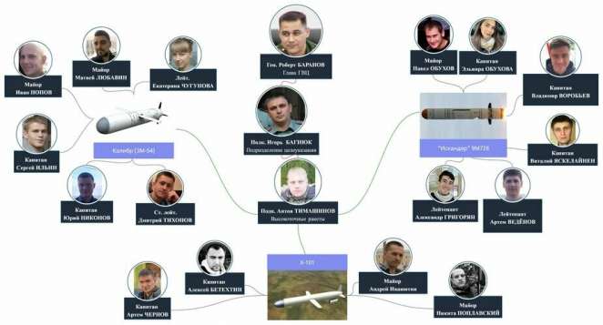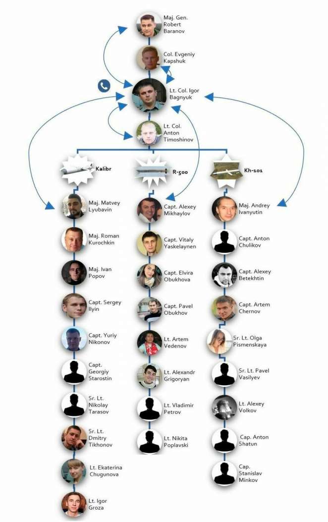 Выявленное подразделение ГВЦ состоит из трех команд, каждая из которых программирует траектории полета одного конкретного типа высокоточных ракет: ЗМ-14 («Калибр», морского базирования), 9М728 (он же Р-500, оперативно-тактические ракетные комплексы «Искандер» (наземного базирования)) и Х-101 (воздушного базирования).