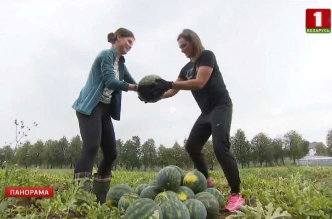 Дарья Шманай и Наталья Эйсмонт собирают арбузы на подворье у Лукашенко