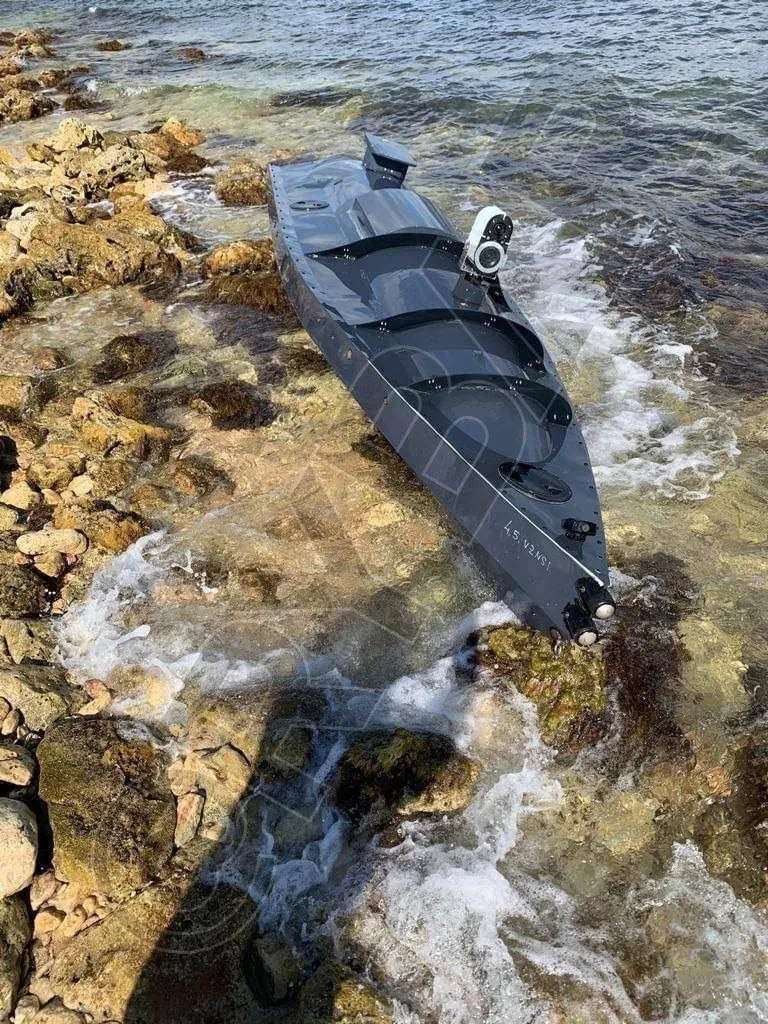Украинский дрон может проходить расстояние около 1000-1200 км и имеет ударную часть весом в 75 кг – заявили в РФ. Откуда такие данные точные? Почему 75 а не 50? А потому что эти беспилотники уже попадали в руки россиян в сентябре еще. Да, в сентябре россияне нашли прибитый к берегу украинский беспилотник и даже выложили фото его. Это видимо был беспилотник который вышел из строя во время тестовых заплывов и который не имел БЧ, видимо потому и не самоподорвался.