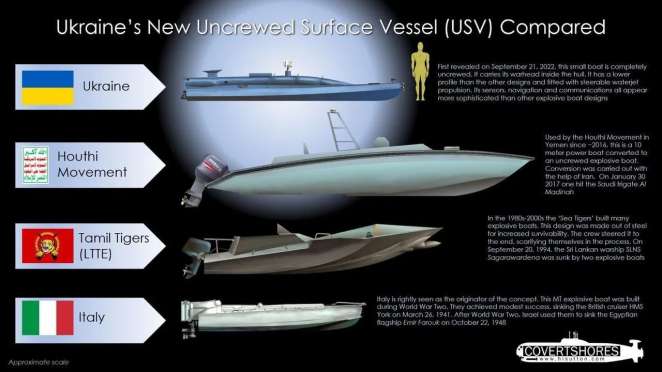 «Все это, повторимся, очень серьезно и не может не напрягать, позабавило лишь то, что янки из числа фанатов бандеровской армии раздувают новость об удивительных укро-инженерах, которые по интеллекту не уступают боевикам-хуситам из Йемена. То есть пытаются из всего, что у них есть под рукой, сделать дальнобойный боеприпас. И в самом деле, на самостийных форумах постоянно идет обсуждение того, как из небольших плавсредств, таких как небольшие моторки, сделать противокорабельные самоуправляемые боеприпасы».