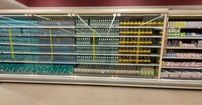 Раньше в этих холодильниках было молоко. Магазин в Минске через месяц после начала регулирования цен. Фото читателя
