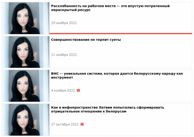 Пропагандистка пишет авторские колонки в «СБ. Беларусь сегодня», выступает на гостелеканалах в роли эксперта и гостьи эфира, а сейчас открыла собственный проект, в котором рассуждает с позиции психологии «о человеческом внутри современной политики», как сказано в аннотации. Однако до сих пор главным героем всех выпусков новой передачи был Александр Лукашенко.