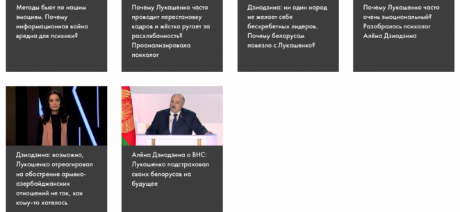 Большинство же выпусков подаются как «анализ» поведения Лукашенко с точки зрения психологии. Конечно, оценки его поступкам приводятся только позитивные. Например, заголовок одной из передач — «Почему Лукашенко часто проводит перестановку кадров и жёстко ругает за расхлябанность? Проанализировала психолог».