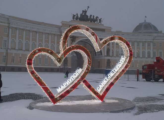 Отреагировал публицист и на инсталляцию в Санкт-Петербурге — композицию из сердечек с названиями городов: