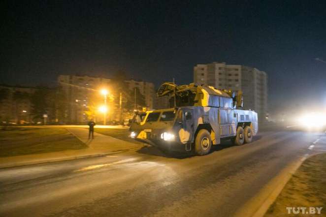 Белорусские ЗРК «Тор» в Минске перед ночной репетицией парада, 2020 год. Фото: TUT.BY