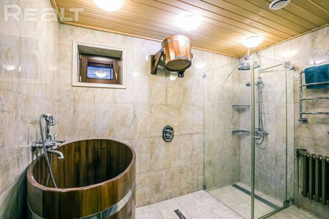 Площадь участка — 11 соток, площадь самого коттеджа — 289,6 м2, из них жилая — 111,2 м2.