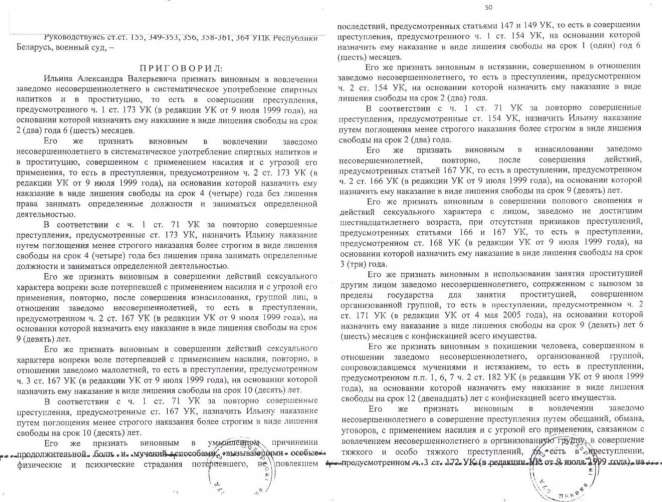 Всего Ильин и его подельники в период с лета 2002 года по декабрь 2005 года совратили, склонили к половым сношениям и иным действиям сексуального характера с Ильиным и иными лицами, вовлекли в занятие проституцией больше десяти заведомо несовершеннолетних девочек, среди которых были и 12-летние.