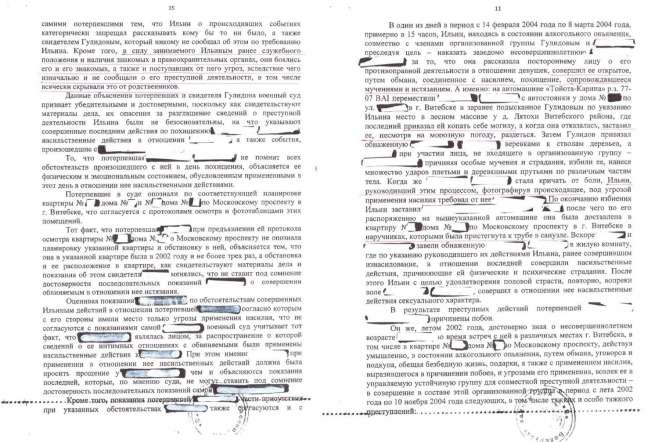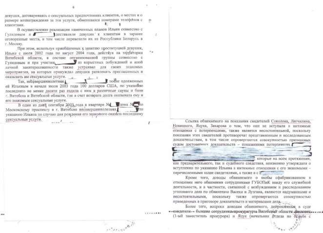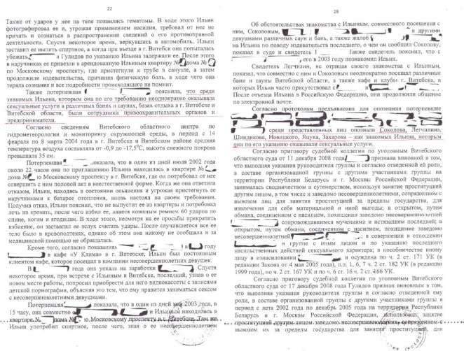«Потерпевшая пояснила, что среди знакомых Ильина, которым она по его требованию неоднократно оказывала сексуальные услуги в различных банях и саунах, базах отдыха в Витебске и Витебской области, были сотрудники правоохранительных органов и предприниматели», — из показаний другой жертвы.