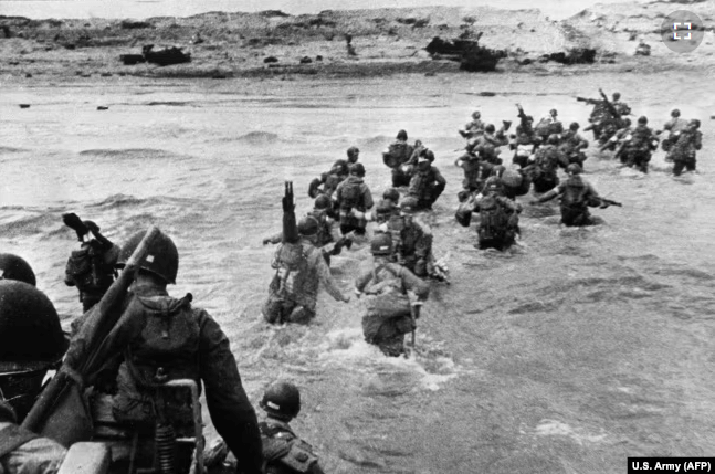 Американские войска высадились на пляжах Нормандии (северо-запад Франции) в качестве подкрепления во время исторического дня «Д» 6 июня 1944 года.