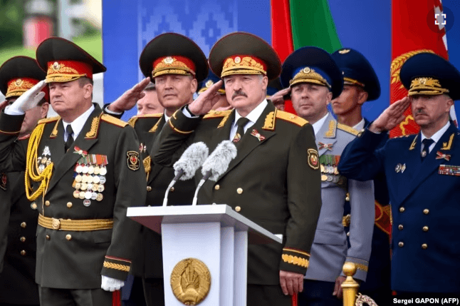 Лукашенко среди военных на параде. Минск, 2018 г.