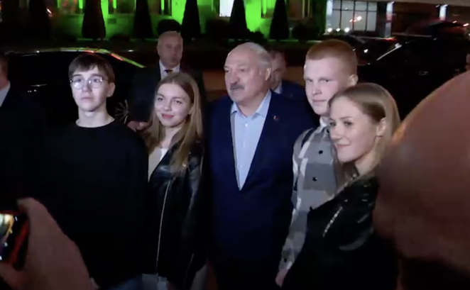 После совещания в Гродненском облисполкоме и матча финала чемпионата Беларуси по хоккею 24 апреля Александр Лукашенко прошелся по вечернему Гродно. Его пресс-служба показала, как он «случайно» увидел компанию молодых людей, которые попросили сфотографироваться с ним.