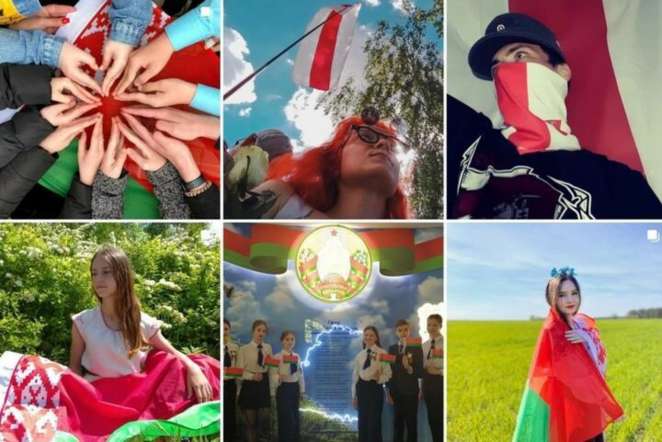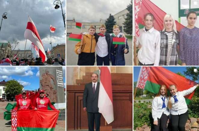 Параллельно с фото госфлагов под предложенными хештегами белорусы стали выкладывать и снимки с бело-красно-белыми флагами. Теперь, если ввести в Instagram #Ганарусяроднымiсімваламi, можно увидеть вот такие подборки.