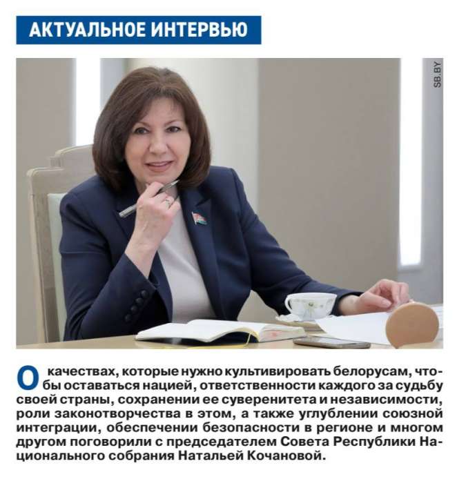 Скриншот с сайта sb.by — фотоснимок Натальи Кочановой, использованный в качестве иллюстрации для интервью, отретуширован очень сильно. Фото: t.me/sovrep