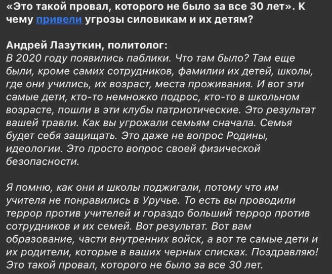 Подобные нарративы встречаются в различных провластных каналах. Мол, попадание в черные списки создало только плюсы для системы, базы, которые есть у «Киберпартизанов» и других инициатив, «неактуальны», а государство, мол, научилось защищать персональные данные.