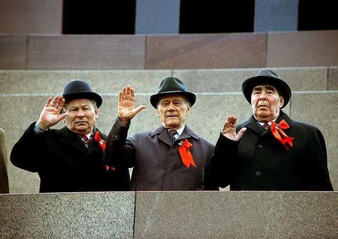 На трибуне Мавзолея члены Политбюро ЦК КПСС: Константин Черненко, Николай Тихонов, Леонид Брежнев, 1 мая 1982 года. Фото: сайт Коммунистической партии Азербайджана