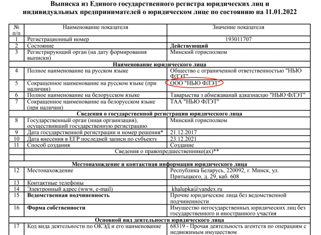 В декабре 2021-го, когда миграционный кризис урегулировали, Ирина Ревенко продала «Нью Флэт» Наталии Шнитовской. Ее супруг Александр Шнитовский работает командиром взвода роты патрульно-постовой службы милиции ГУВД Мингорисполкома.
