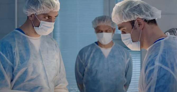 Главный герой картины «Лист ожидания» в операционной. «Беларусьфильм», июнь, 2023 год. Фото: кадр из фильма