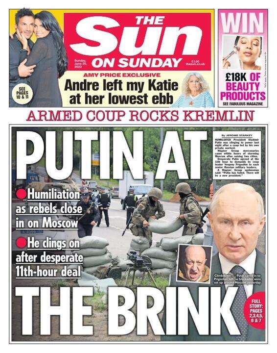 По версии британского таблоида The Sun, «на грани» оказался лично Путин, который «перенес унижение» от приблизившихся к Москве наемников и всю ночь «цеплялся за власть».