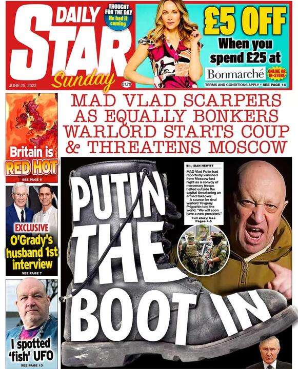 Таблоид Daily Star считает одинаково «чокнутыми» и Путина, и Пригожина, и намекает, что в скором времени в России «будет новый президент».