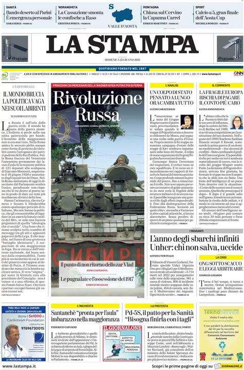 Воскресный номер La Stampa, судя по всему, заверстали и отправили в печать еще до того, как Лукашенко, Пригожин и Песков заявили об урегулировании конфликта. Там на первой полосе громко заявляют прямо-таки о «революции в России» и «точке невозврата для Путина», проводя параллель с 1917 годом.