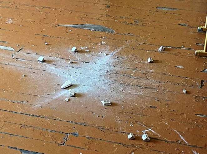 А в другой раз с потолка отвалился кусок штукатурки и чуть не попал в голову сыну.