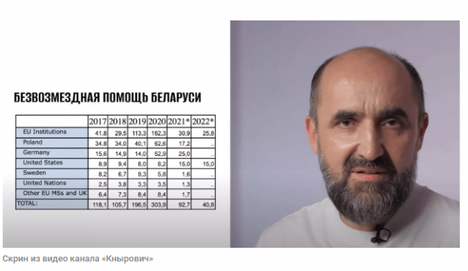 — В 2019 году — 300 млн евро. И только 12% от этой суммы пошло на проекты гражданского общества. Все те, которые сегодня считаются проплаченными Западом, влиянием западной цивилизации и все то, что так жутко ругает Азаренок и его друзья. Все остальное получало и тратило беларусское государство.