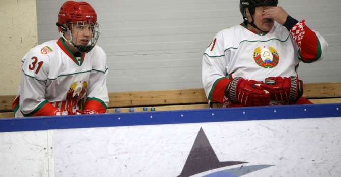 Александр и Николай Лукашенко на хоккее. Скриншот из видео