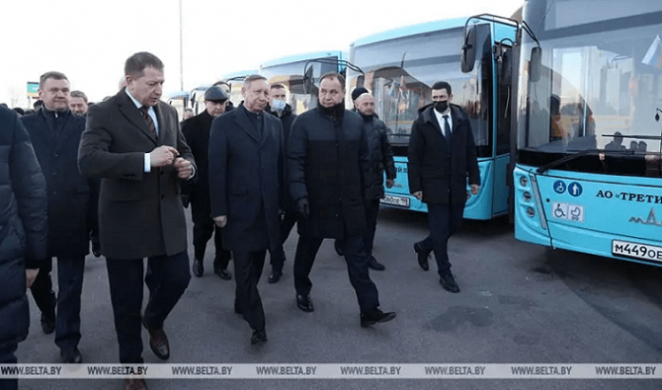 Премьер-министр Беларуси Роман Головченко и губернатор Санкт-Петербурга Александр Беглов в приподнятом настроении провели торжественную церемонию по передачи городу на Неве первой партии пассажирской техники.