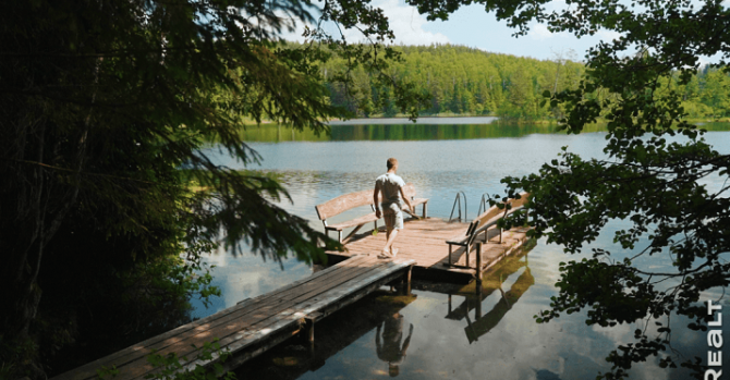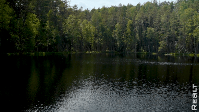 Одно озеро в представлении не нуждается из-за таинственной атмосферы вокруг. Можно догадаться об его названии по сфагнуму — мху, которому три тысячи лет и густому темному лесу по соседству, который не светлеет даже на солнце. Это озеро Мертвое. Его котлован заполнен подземными водами и образовался в результате провала слоя земли. Верхний слой — пресный, а на нижнем лежит сероводород. Считается, что тут нет жизни, а вода почти дистиллированная. Олег без раздумий лег на пристань, умылся и попробовал воду на вкус, как будто это часть какого-то ритуала. Есть у озера и другая история. По легенде здесь много веков хоронили викингов, поэтому и название такое дали.