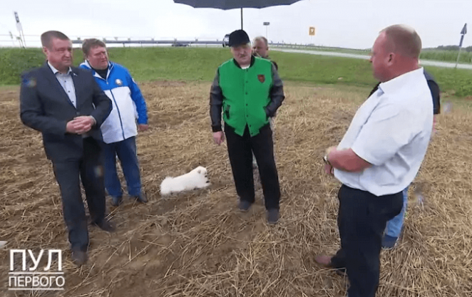 Комичный эпизод: Лукашенко под зонтиком в окружении мокнущих чиновников