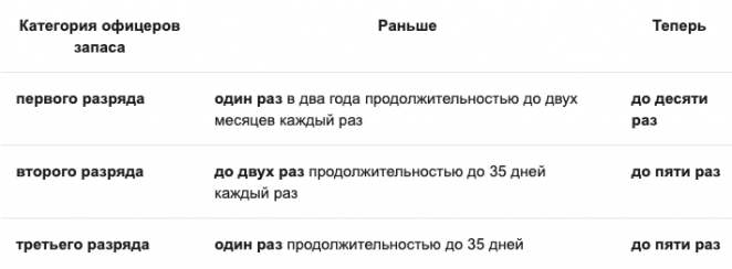 Изменения коснулись и офицеров запаса. И тут все выглядит намного серьезнее, хотя продолжительность сборов и периодичность в новой редакции также не прописаны.