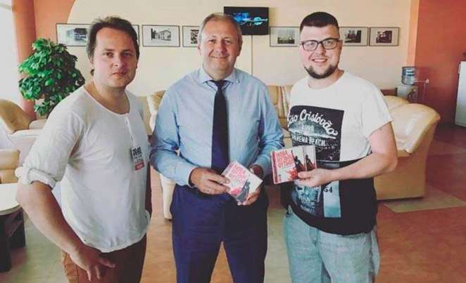 Франак Вячорка и Павел Белоус с Сергеем Румасом, в то время руководителем Белорусской федерации футбола, а затем премьер-министром