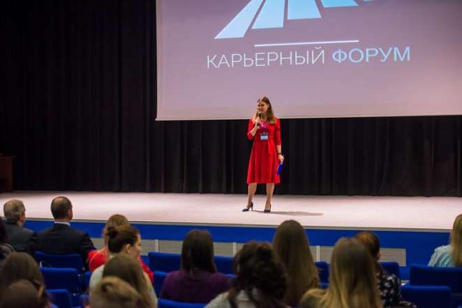 Выступление на Карьерном форуме БГУ. Фото из личного архива героини материала