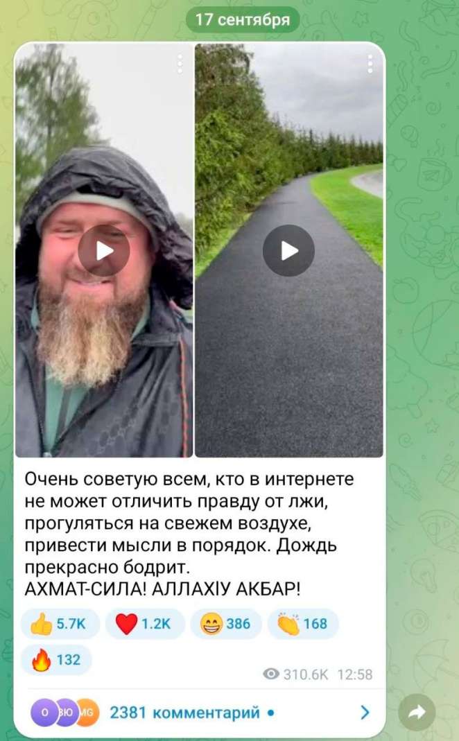 Слухи, которые появились по этому поводу 17 сентября, подтвердил в своем канале в Telegram Абубакар Янгулбаев - чеченский правозащитник, оппозиционер и личный враг Рамзана Кадырова.