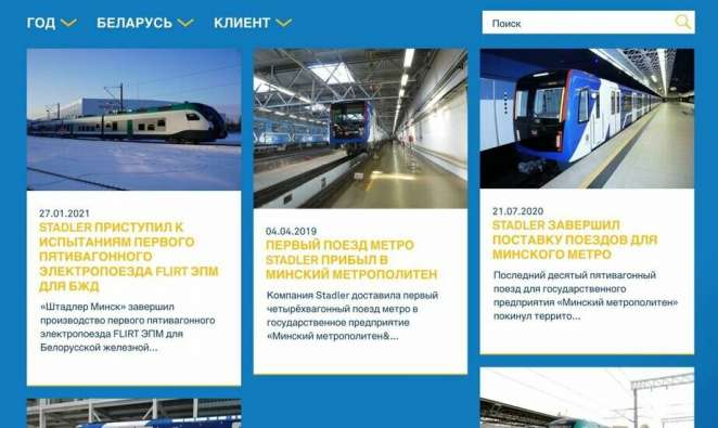 На головном сайте «Штадлера» последнее упоминание о Беларуси-в 2021 году.