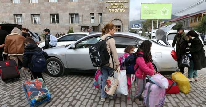 Армяне покидают Степанакерт, ставший азербайджанским. Кадр из видео