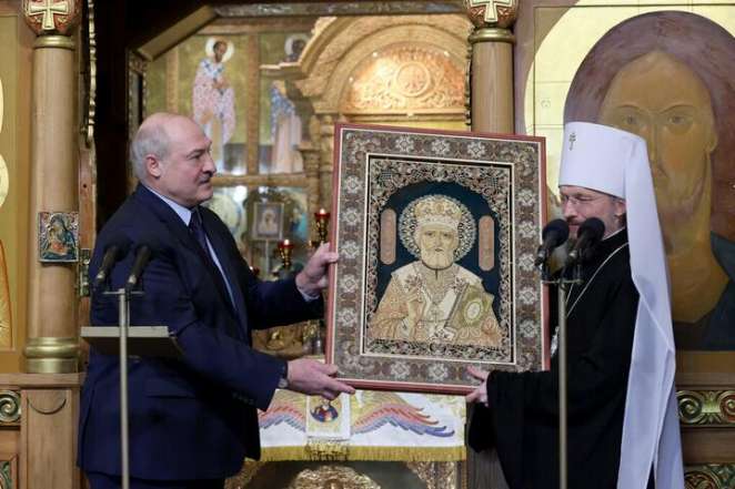 Митрополит Вениамин и Александр Лукашенко в храме Оптинских старцев 6 января 2022 года. Фото: пресс-служба Лукашенко