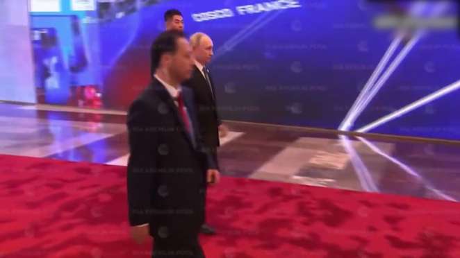 В другом ролике Путин выходит со встречи в Пекине с морскими офицерами, снова снятыми в нескольких шагах от Путина, который ухмыляется, спускаясь по лестнице.