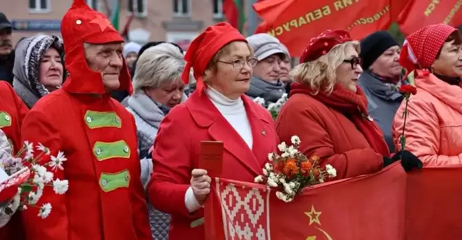 При этом у большевиков была по-своему цельная идеология. И пока их система не одряхлела, лозунги могли зажигать, порождали драйв. Белорусский режим в этом плане априори бесплоден. Лукашенко сам не раз признавался, что ни он, ни его окружение более или менее внятной идеологии так и не смогли сгенерировать. В сегодняшней Беларуси отмечание “Великого Октября” порой превращается в откровенный треш.