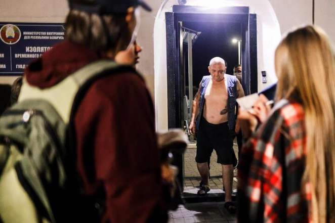 Избитый мужчина выходит из изолятора на Окрестина, его встречают волонтеры. Август 2020 года. Фото: TUT.BY