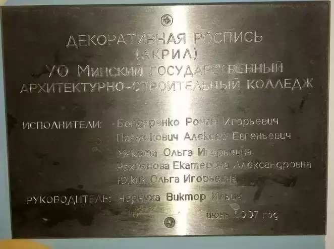 Также на стене размещалась табличка с именами создателей фрески, там было указано и имя Романа Бондаренко.