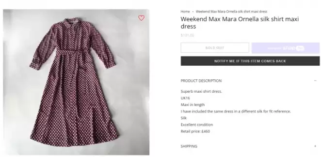 В массе безымянной одежды мы заметили платье итальянского модного дома Max Mara. Вещь изготовлена из шелка и украшена декоративными пуговицами. Актуальная стоимость такой — около 570 долларов США.