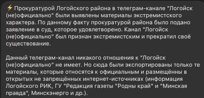 Все сообщения с него были удалены. Сейчас на нем просто цитируются официальные сообщения и сообщения черносотенной «Минской правды». Примечательно, что местная районка называется «Родны край». Неизвестно, захвачен ли канал, или просто прежних авторов «нормализовали».