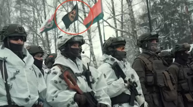 Пресс-службы МВД и внутренних войск опубликовали красочные ролики выступления и на кадрах акцентировали внимание на флагах так называемой ЧВК «Вагнер», которые висели на флагштоке вместе с госфлагом Республики Беларусь и, видимо, флагом спецназа. Эта же незарегистрированная символика российских боевиков находилась на пикапе с крупнокалиберным пулеметом, обращает внимание Reform.by.