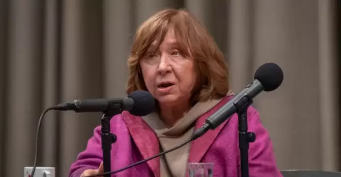 Сегодня Беларусь и Россия, по словам автора, «опять оказались в гетто». «Мы <…> все-таки были открыты миру, много молодых людей ездило, училось [за границей], в этом была надежда, а сейчас она отброшена на пару десятков лет назад», — констатировала Алексиевич.