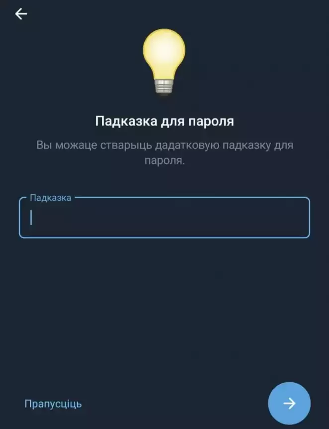 Этап создания подсказки для пароля двухфакторной аутентификации в телеграме