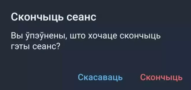 Окошко подтверждения завершения сеанса