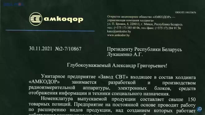 В разветвленной структуре «Амкодора» существует унитарное предприятие «Завод СВТ». Оно занимается производством осциографов, вольтметров, чистомеров, генераторов, шумомеров. Вместе с этим предприятие имеет скрытое производство в интересах военно-промышленного комплекса Беларуси. Его никто не афиширует, так как может быть неприятная реакция.